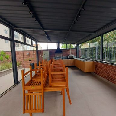 Apartamento com 2 dormitórios,1 suite,1 vaga,armários na cozinha,banheiro com box e gabinete,piso laminado,varanda fechada com vidro,aquecedor.