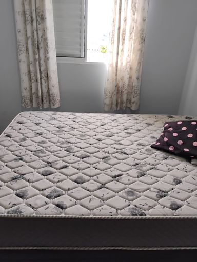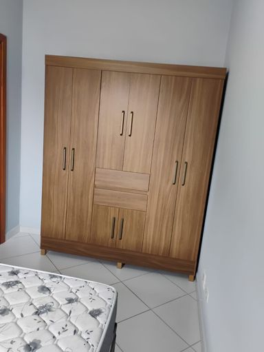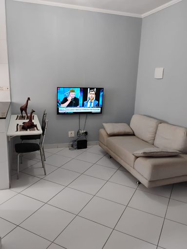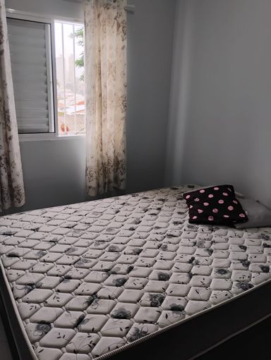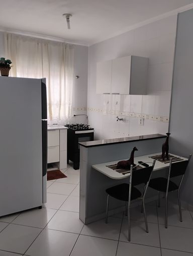 2 dormitórios,sala integrada com cozinha ,wc e 1 vaga de garagem,semi mobiliado,geladeira,fogao,cama box de casal,guarda roupa,armário de cozinha,sofá,.